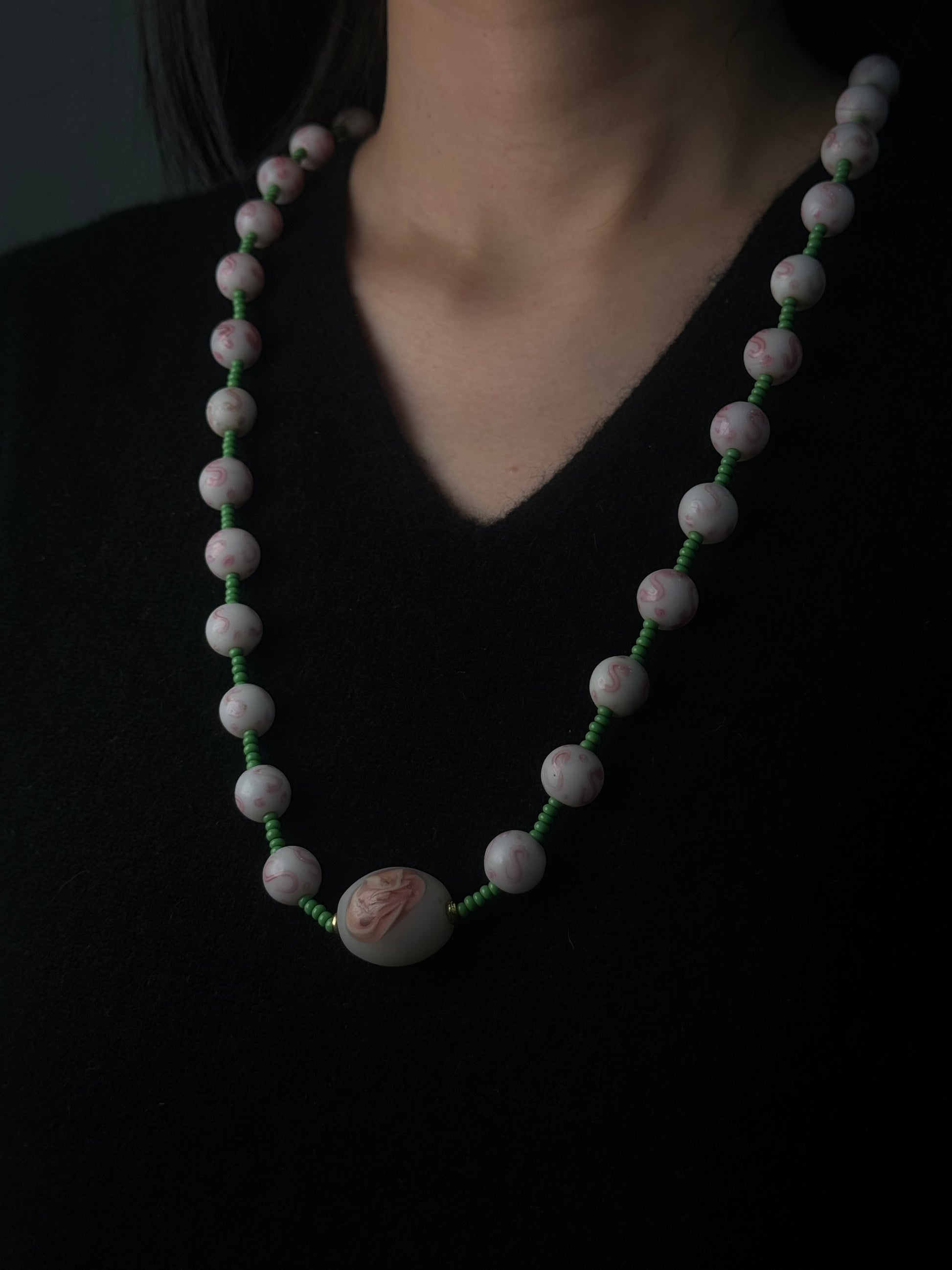 Beads alternate in a serene rhythm—white, pink, gold, and pale rose—echoing the calm of daybreak in a dewy garden. Each gentle touch becomes a moment of self-affirmation, reminding Virgo that true excellence blossoms from a heart both clear and kind.