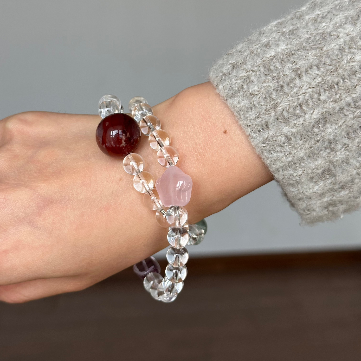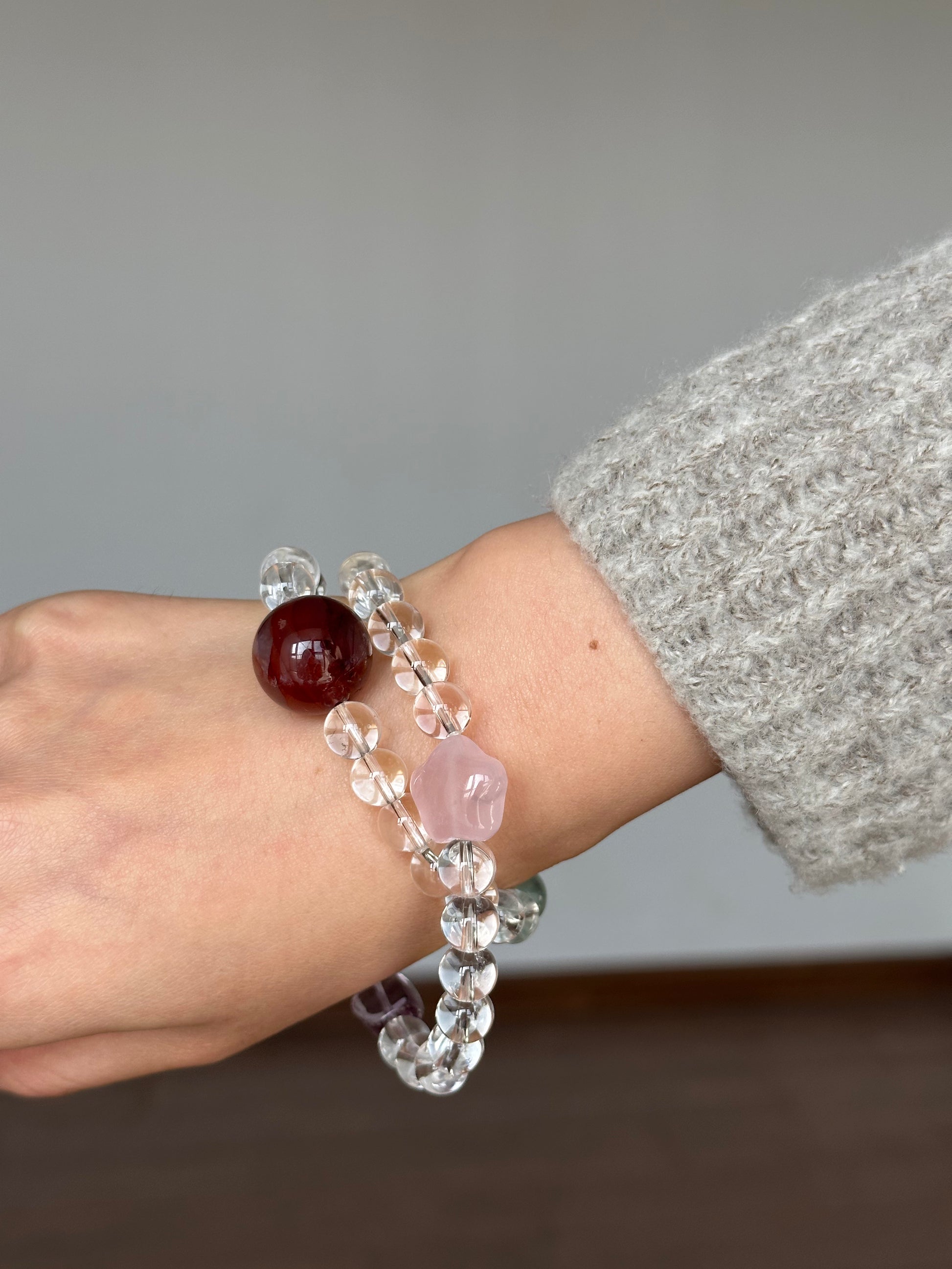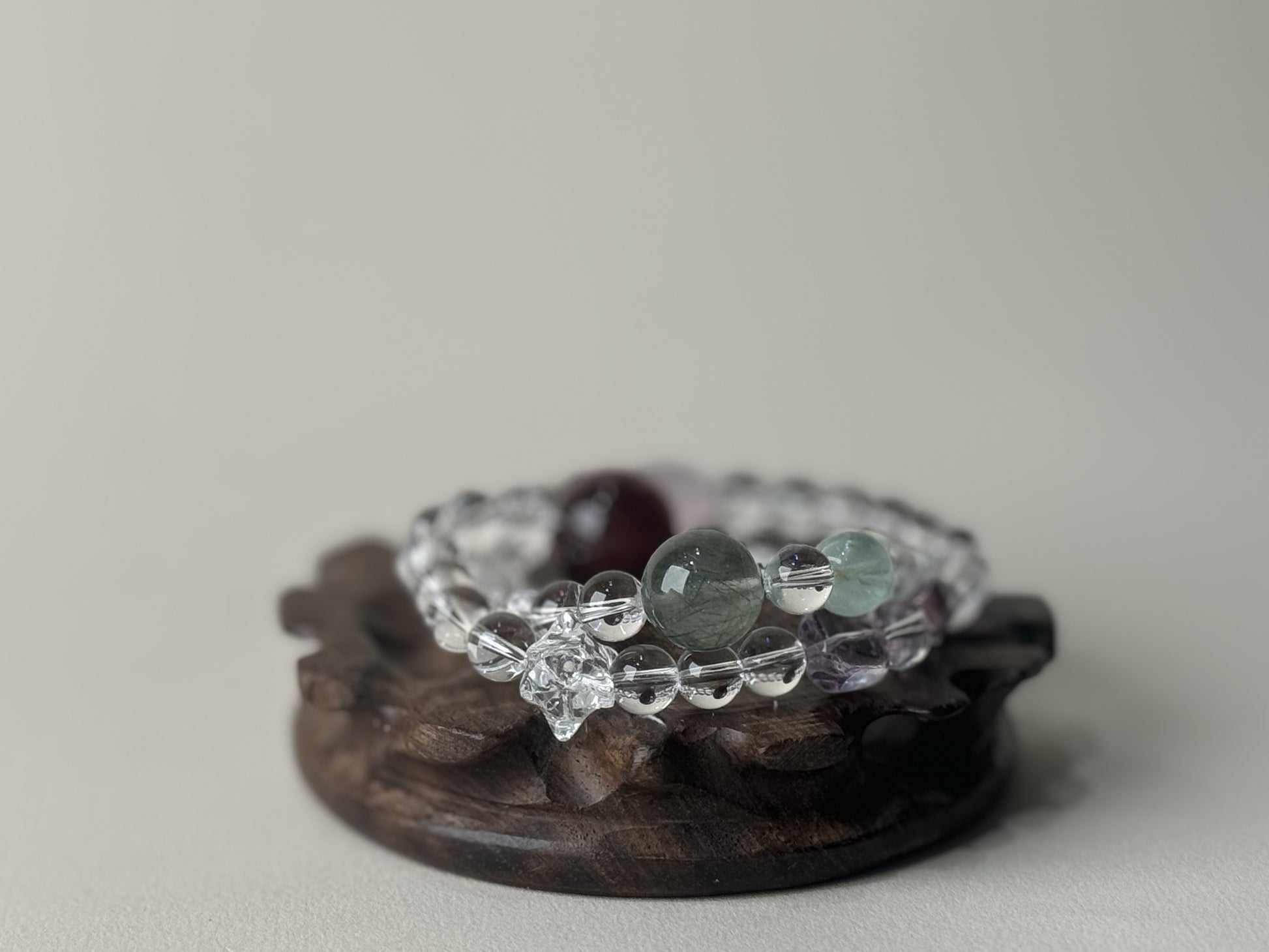 Clear Quartz Base: Pure and transparent, it symbolizes mental clarity and emotional purification, gently dissolving anxiety so you may think with fresh perspective.